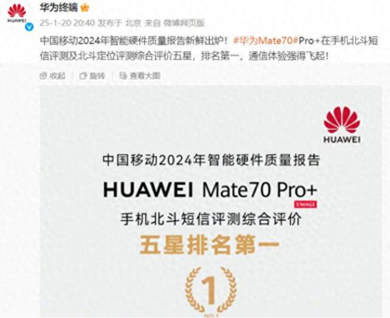 1月20號(hào),據(jù)中國(guó)移動(dòng)2024年智能硬件質(zhì)量報(bào)告顯示,華為Mate70 Pro+在北斗短信和北斗定位兩項(xiàng)評(píng)測(cè)中雙雙拿下了第一名,展現(xiàn)出非常強(qiáng)的技術(shù)和實(shí)力。這款搭載雙衛(wèi)星通信技術(shù)的旗艦機(jī),到底有什么過(guò)人之處?